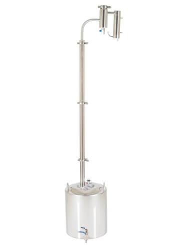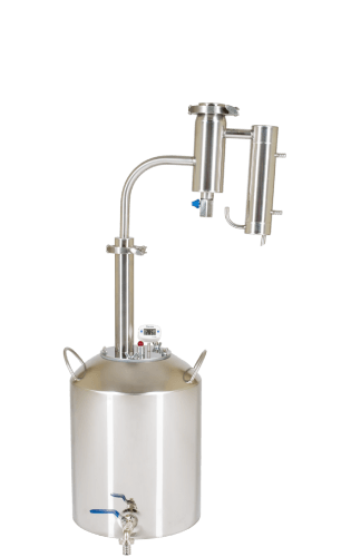 Широкие соединительные трубки диаметром 18 мм и спускной клапан гарантируют полную безопасность при перегонке. Закупорка исключена.